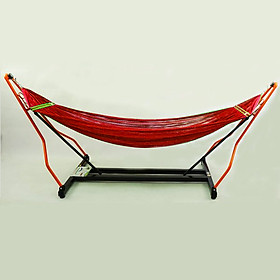 Khung võng xếp bằng ống thép: sơn tĩnh điện, đường kính 27.0mm, chiều dày 0.9mm, 4 thanh chống cong:điều chỉnh độ dài & độ cao của khung võng. Kích thước sử dụng: trung bình 210