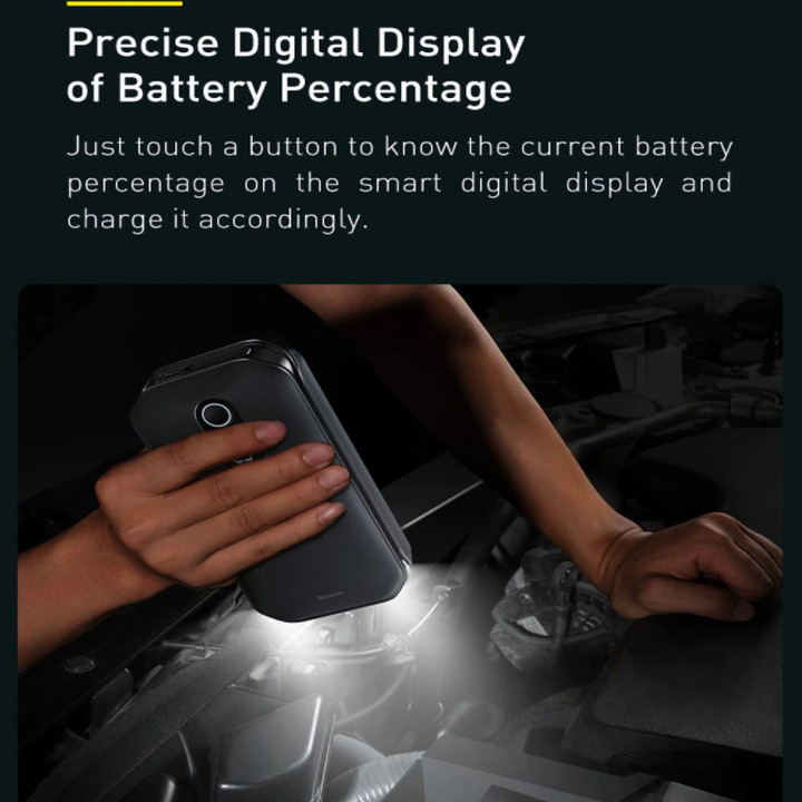 - Bộ kích nô kiêm sạc dự phòng dùng cho xe ô tô Baseus CRJS03-01 là sản phẩm sử dụng giúp tài xế xử lý trong tình huống bình ắc quy của xe hết điện. Sản phẩm này có thể sử dụng tốt cho Xe máy, xe mô tô, xe ô tô máy xăng và xe ô tô máy dầu