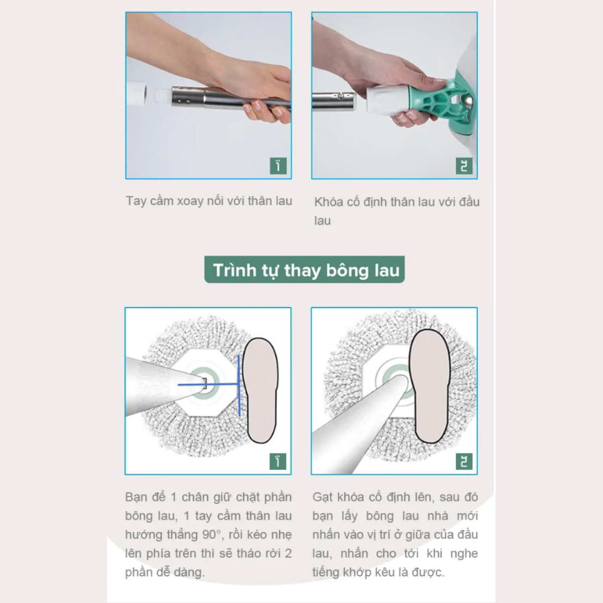 MÔ TẢ SẢN PHẨM Cây lau nhà thông minh tự vắt với khả năng lau sạch sàn nhà một cách nhanh chóng và nhẹ nhàng, phù hợp với mọi loại bề mặt sàn như sàn