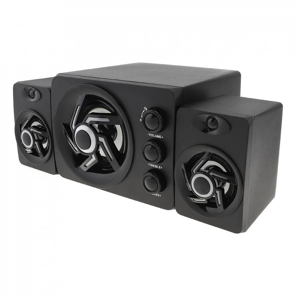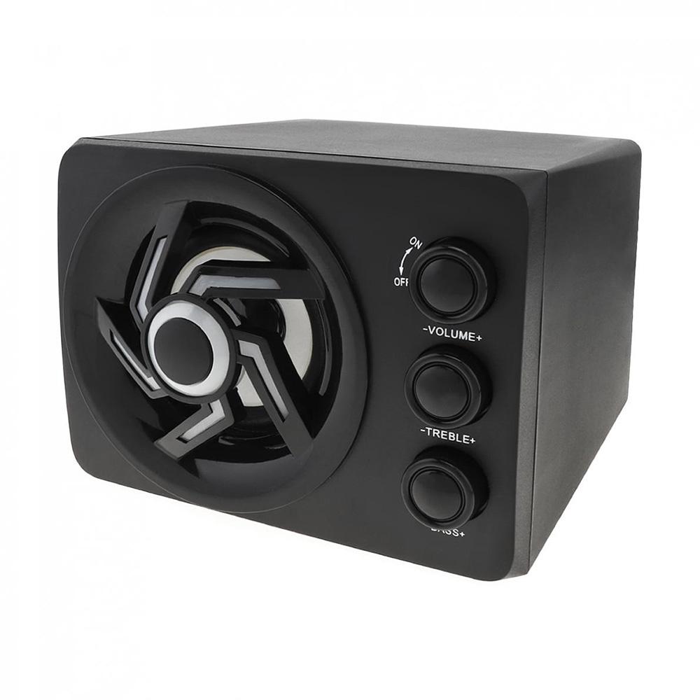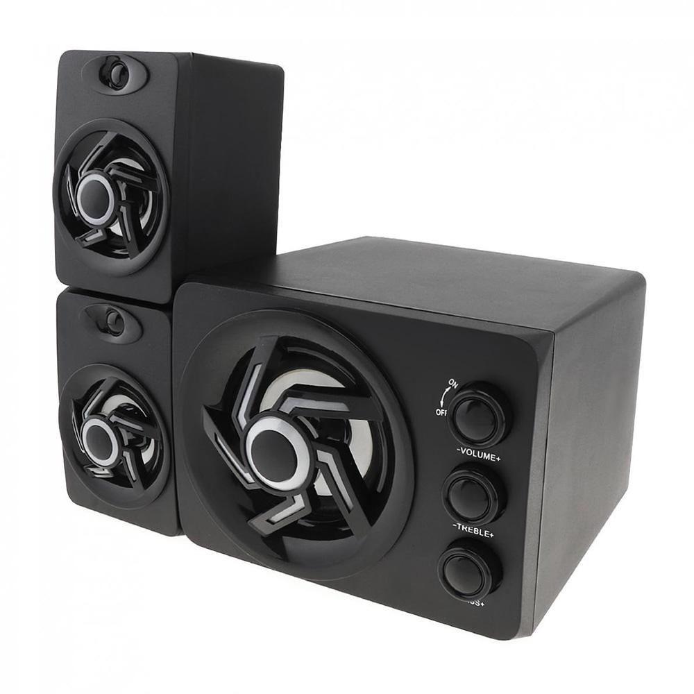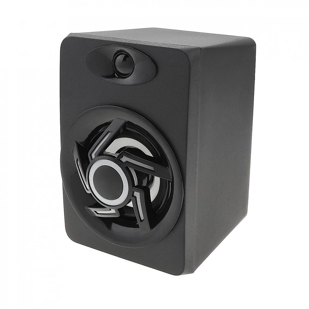 Features: Equipped with bass phase reversal hole, let the bass more shocking. Independent knobs, volume, treble, and bass can be adjusted separately. Ice blue atmosphere lamp, full of sense of science and technology, gorgeous lighting.
