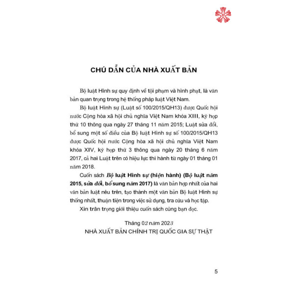 Nhằm đáp ứng nhu cầu tìm hiểu, nghiên cứu Bộ luật Hình sự của bạn đọc nói chung, của cán bộ làm công tác pháp luật, cán bộ nghiên cứu, giảng dạy pháp luật và