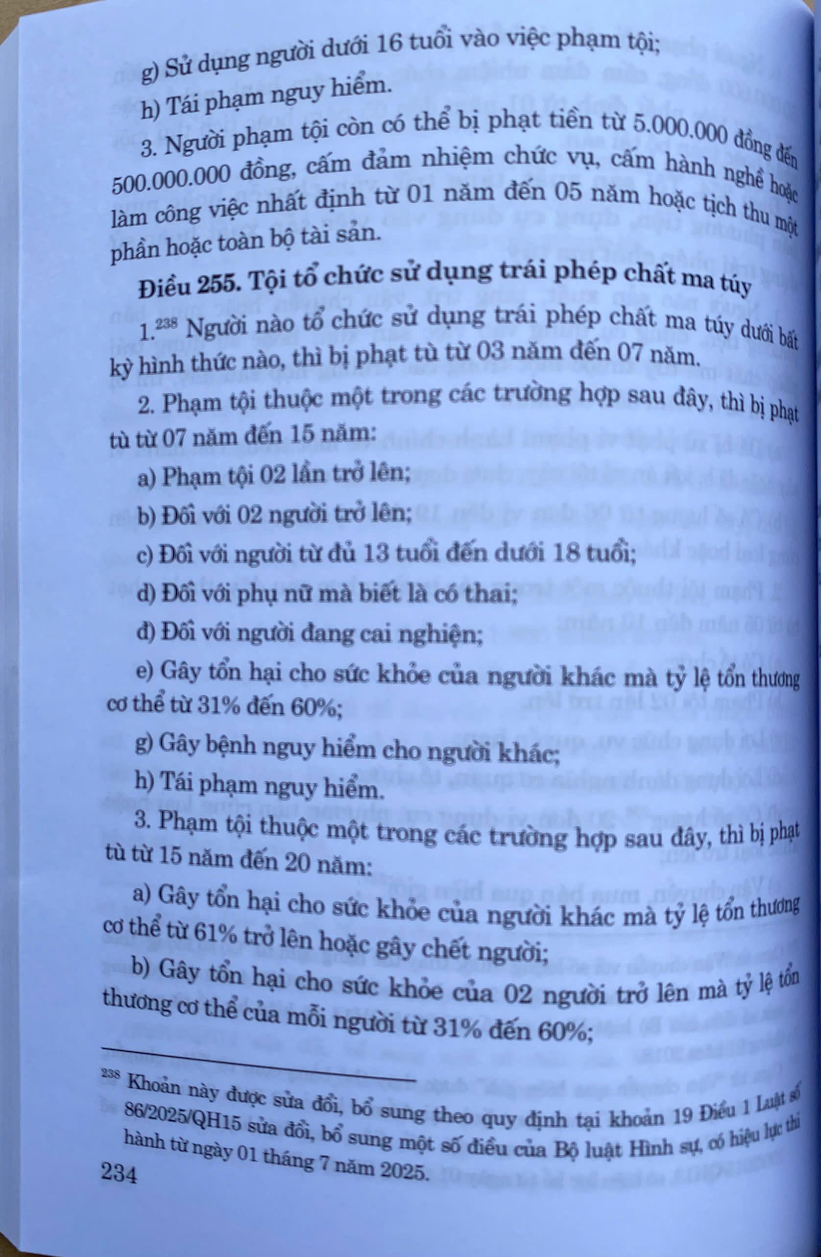 Mua tại TiktokTại Kỳ họp thứ 9 Quốc hội nước Cộng hòa xã hội chủ nghĩa Việt Nam khóa XV đã thông qua Luật số 86/2025/QH15 ngày 25 tháng 6 năm 2025 của Quốc hội ban hành Luật sửa đổi, bổ sung một số điều của Bộ luật Hình sự số 100/2015/QH13 đã được sửa đổi, bổ sung một số điều theo Luật số 12/2017/QH14 và Luật số 59/2024/QH15. Luật có hiệu lực áp dụng từ ngày 01 -07-2025