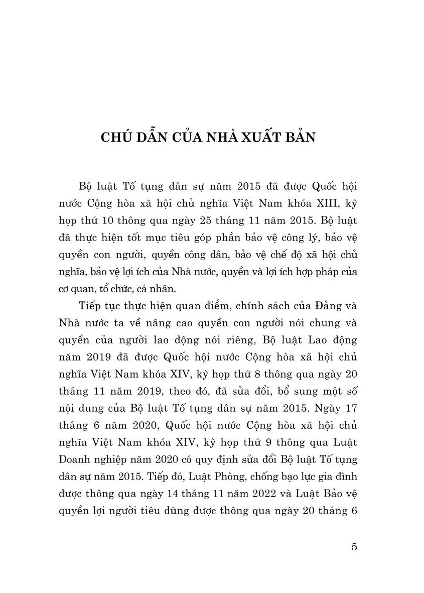 Cuốn sách là văn bản nhất thể hóa của Bộ luật Tố tụng Dân sự năm 2015 với nội dung sửa đổi, bổ sung Bộ luật Tố tụng Dân sự năm 2015 của Bộ luật