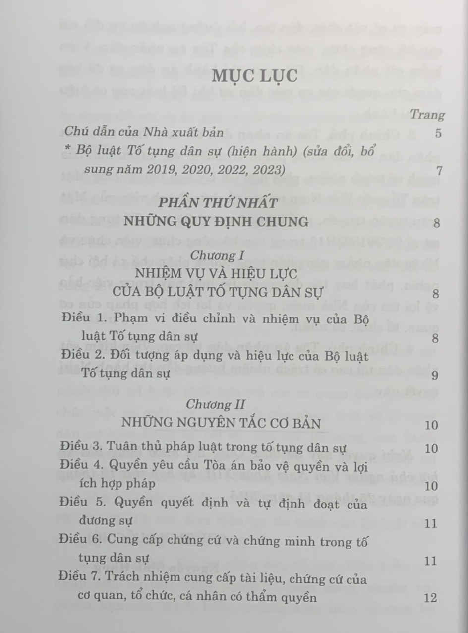Để thuận tiện cho bạn đọc trong việc tìm hiểu và áp dụng Bộ luật Tố tụng dân sự, Nhà xuất bản Chính trị quốc gia Sự Bộ luật Tố tụng dân sự (hiện hành) (sửa đổi, bổ sung năm 2019, 2020, 2022, 2023). Nội dung cuốn sách là văn bản hợp nhất Bộ luật Tố tụng dân sự năm 2015 với nội dung sửa đổi, bổ sung Bộ luật Tố tụng dân sự năm 2015 của Bộ luật Lao động năm 2019, Luật Doanh nghiệp năm 2020, Luật Phòng, chống bạo lực gia đình năm 2022 và Luật Bảo vệ quyền lợi người tiêu dùng năm 2023.