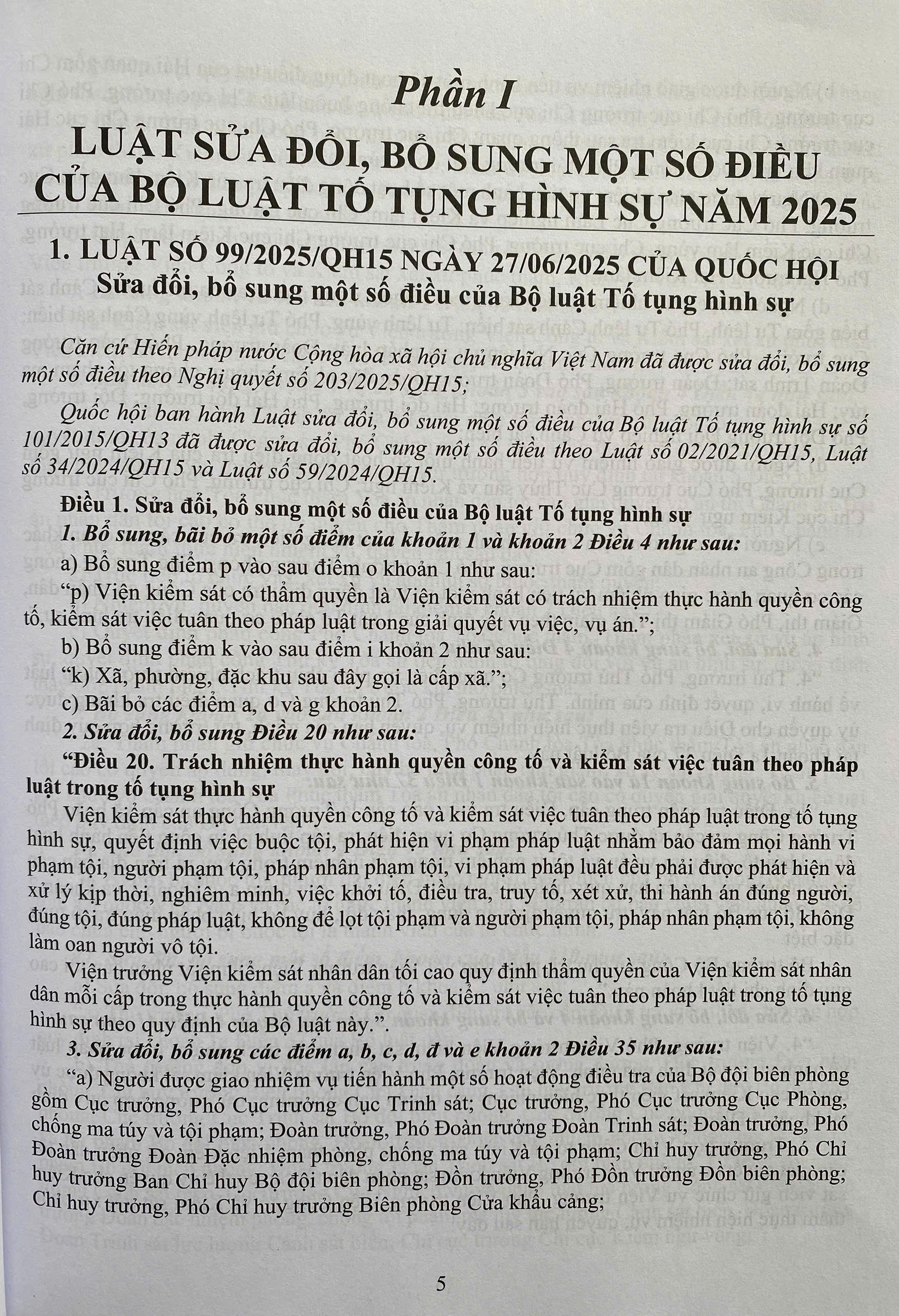 Phần I. Luật sửa đổi, bổ sung một số điều của bộ luật tố tụng hình sự năm 2025