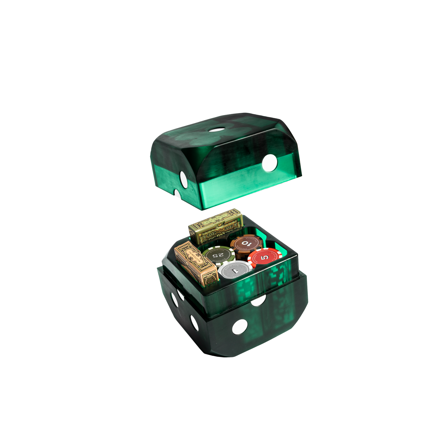 Mua tại TiktokLumina Dice Poker là ý tưởng kết hợp phá cách giữa poker và xí ngầu: đề cao lối chơi khôn khéo và tìm kiếm cơ hội chiến thắng may rủi. Bộ Poker chips đặt trong khối xí ngầu trong suốt, từng chi tiết được tính toán và gia công chính xác để tạo hiệu ứng ánh sáng xuyên thấu đẹp mắt. Chất liệu nhựa resin phối nút inox tăng thêm tính thẩm mỹ, gợi sự hấp dẫn và khó đoán cho mỗi cuộc chơi. Kèm theo bên trong Lumina Dice Poker là hai bộ bài được thiết kế độc quyền, nâng cấp trải nghiệm người chơi và khẳng định tính độc nhất của sản phẩm. Đây là món quà tuyệt hảo dành cho những tín đồ mê poker cũng như ai yêu thích tinh thần sáng tạo nghệ thuật.