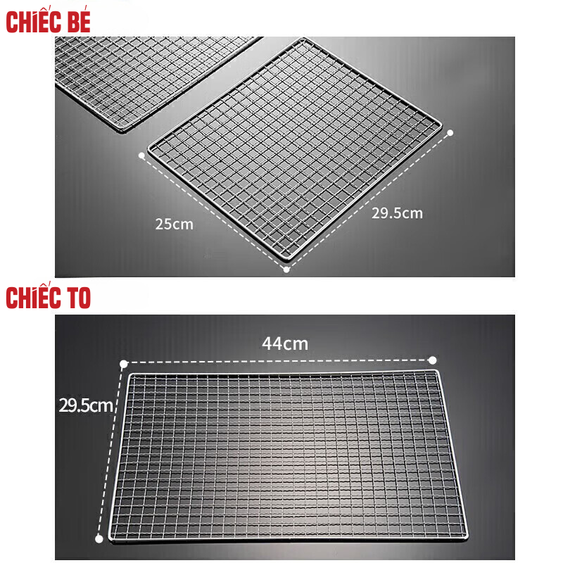 Bộ lưới nướng BBQ, tiện lợi nhỏ gọn bền đẹp, thích hợp bữa tiệc thịt nướng dã ngoại, nướng trong nhà - Sản phẩm gồm 2 vỉ nướng: +Vỉ to kích thước: 29,5cm x 44cm