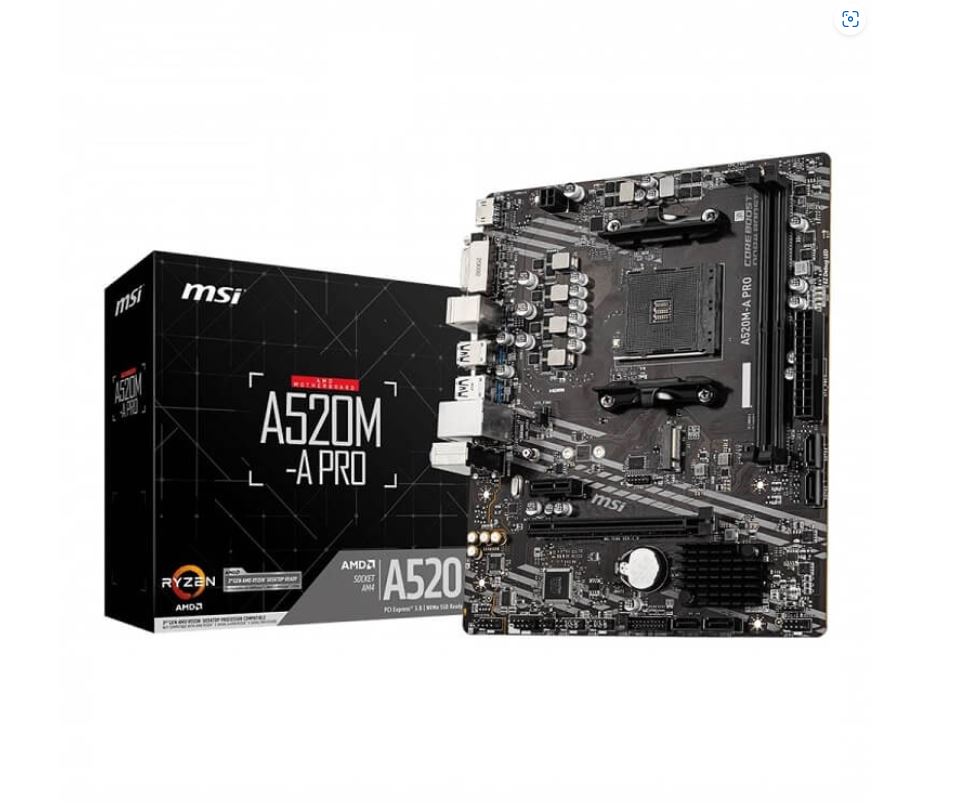 Thương hiệu MSI Dòng sản phẩm A520M-A PRO Chipset AMD A520 CPU Supports AMD Ryzen 5000 Series, 5000 G-Series, 4000 G-Series, 3000 Series and 3000 G-Series processors Memory 2x DDR4 memory slots, support up to