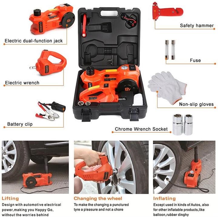 Bộ nâng kích gầm điện, kiêm máy bơm lốp và máy siết ốc ô tô đa năng 3 trong 1