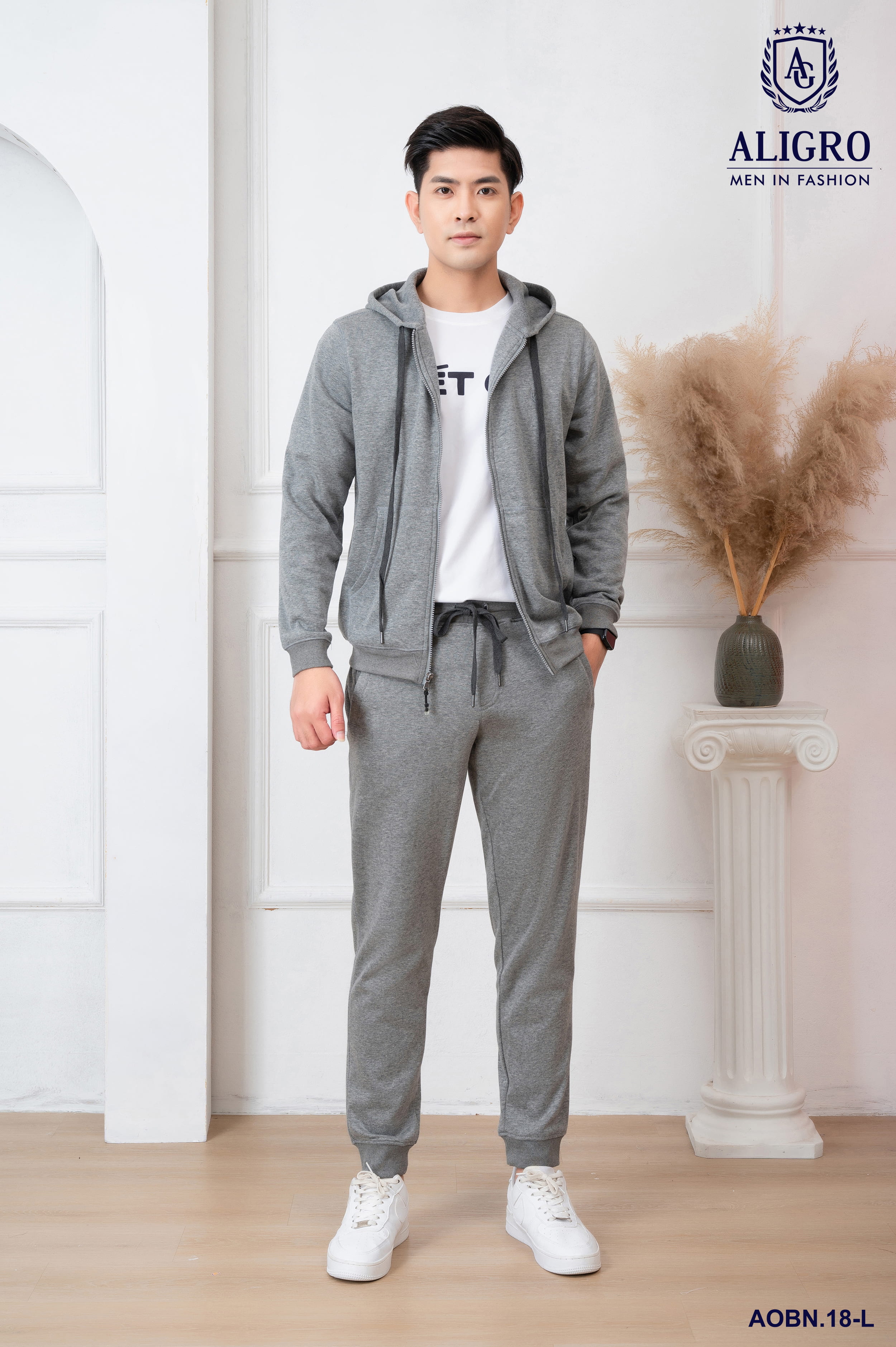 ✨Bộ nỉ kéo khóa ALIGRO có mũ màu ghi nhạt BN.18