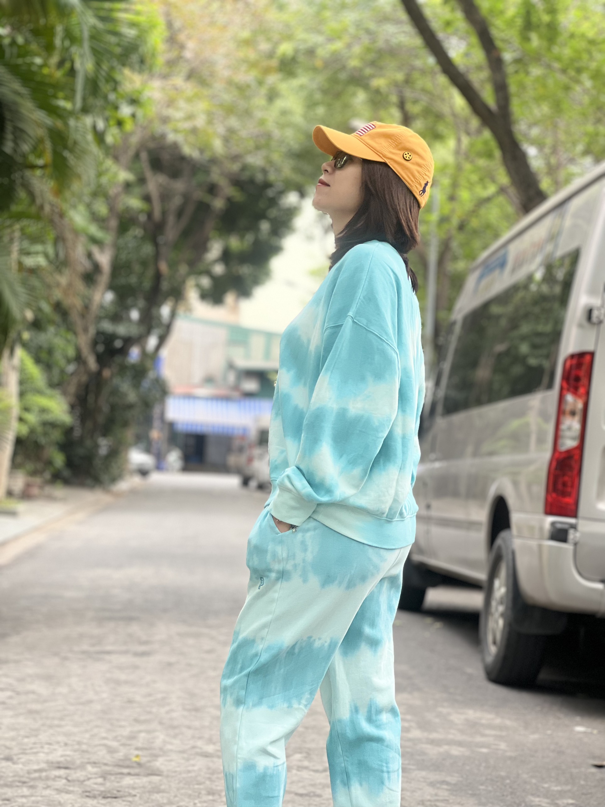 ✨Bộ nỉ Victoria Secret màu xanh loang unisex mềm mịn, thoải mái cho vận động thể thao và phù hợp cả mặc nhà