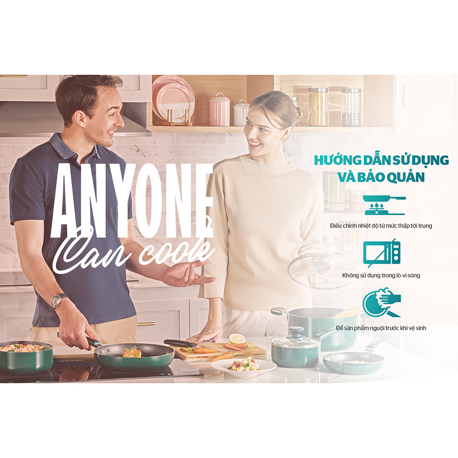 Set gồm 6 món tiện dụng: • Chảo nhỏ 20cm & chảo lớn 24cm • Quánh nhỏ 16cm & quánh lớn 18cm (đều kèm nắp) • Nồi nhỏ 24cm & nồi lớn 24cm (đều kèm