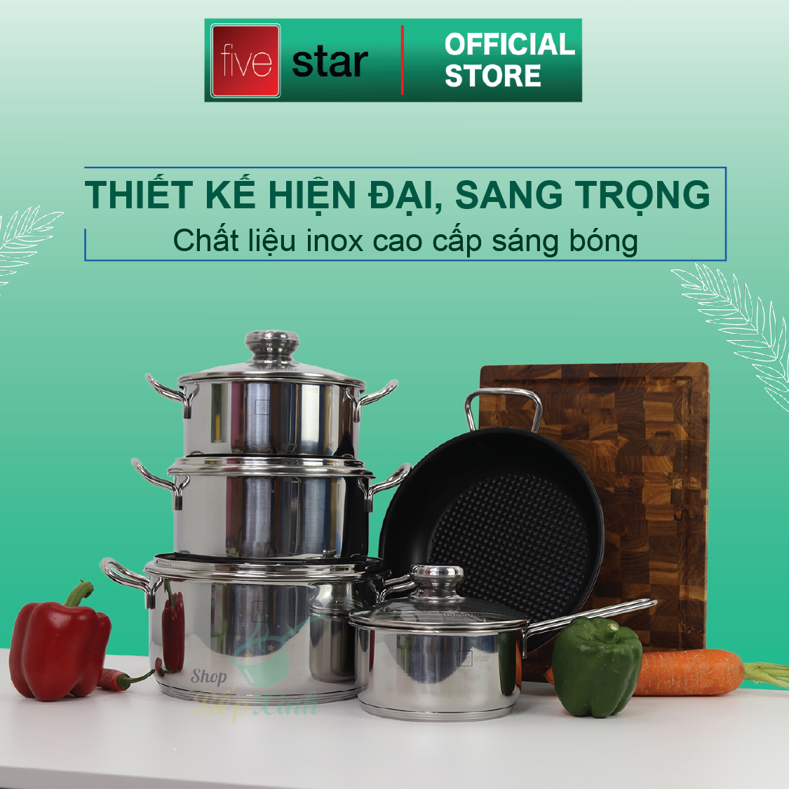 Bộ nồi Five Star Cao Cấp inox 304 Kitchi Nắp Kính mới