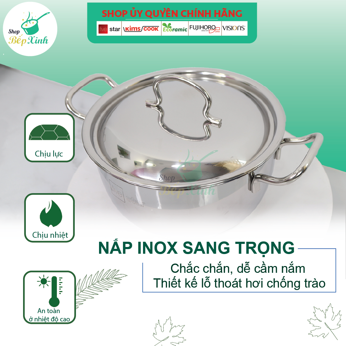Bộ nồi Five Star Cao Cấp inox 304 Kitchi Nắp Kính mới