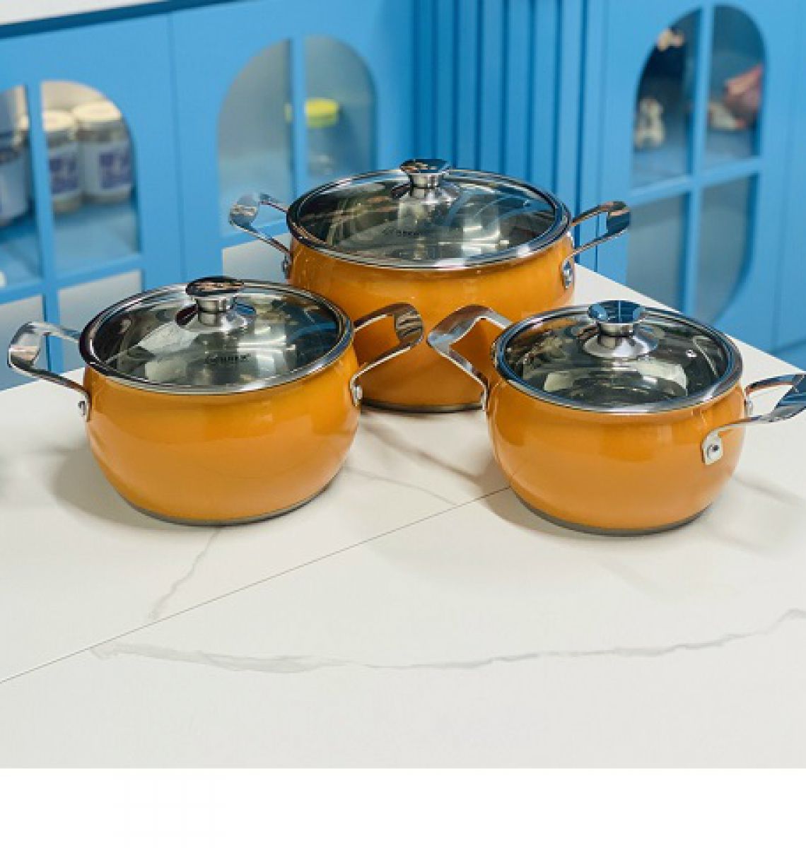 Bộ nồi gồm có: + N16cm+20cm+chảo 20cm : 1 nồi 16cm , 1 nồi 20cm và 1 chảo chống dính 20cm + N16cm+24cm+chảo 22cm : 1 nồi 16cm , 1 nồi 24cm và 1 chảo