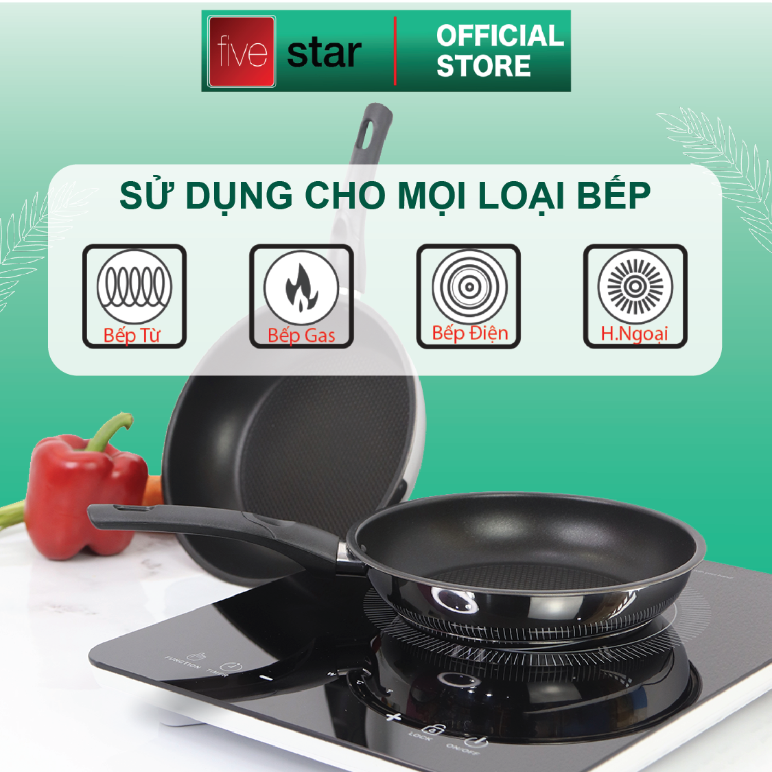 Bộ nồi, chảo 5 đáy Inox 304 Fivestar Plus FPB55D001 vung kính đáy từ, bảo hành 25 năm