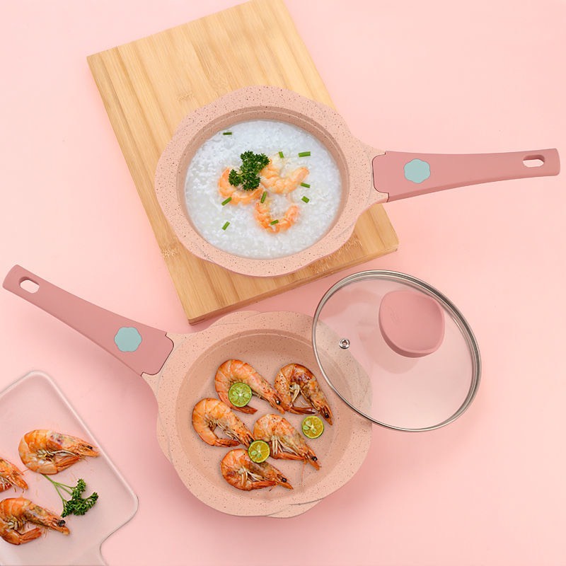 ️ Nồi và chảo được làm từ hợp kim cao cấp 6 lớp tráng men hoa văn đá chống dính cực tốt, thiết kế hình hoa cực dễ thương màu sắc trang nhã.