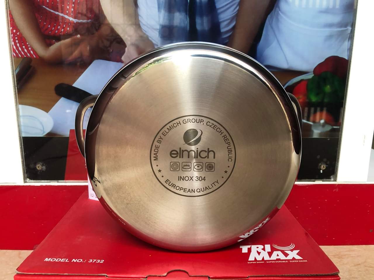Bộ nồi Inox cao cấp 3 lớp liền đáy Tri- Max EL-3742- 4 chiếc Size 18cm, 20cm, 26cm và Chảo 26cm 3 lớp cả thân đáy liền bắt nhiệt nhanh và tỏa nhiệt đều từ thành và đáy.