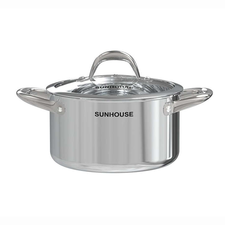 Bộ Nồi Chảo Inox 304 Đáy Liền Sunhouse SHG808 chất liệu Inox không gỉ giúp bộ sản phẩm sáng bóng và dễ dàng vệ sinh, lau chùi. Thiết kế trang nhã với những đường nét bo tròn hiện đại, góp phần tạo nên diện mạo hài hòa, đẹp mắt cho căn bếp gia đình.