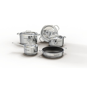 Bộ nồi có cấu tạo đáy 5 lớp tỏa nhiệt đều và giữ nhiệt tốt nên rất tiết kiệm nhiên liệu cũng như thời gian nấu nướng. Đặc biệt, sản phẩm hạn chế cháy khét thực phẩm giúp bạn nấu nướng thuận tiện hơn.