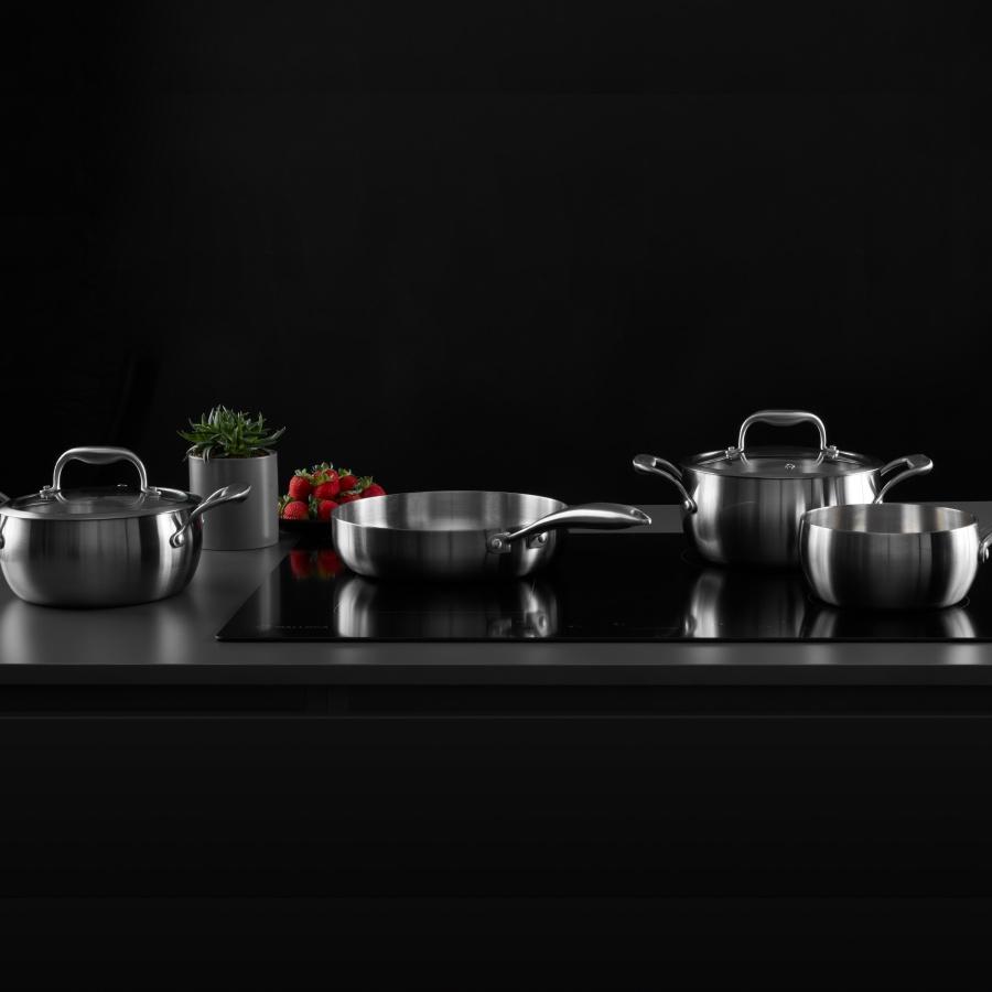 Chảo Inox 3 lớp nguyên khối Ruby sở hữu thiết kế sang trọng, chuẩn Châu Âu với chất liệu inox sáng bóng bên ngoài. Lòng chảo phủ chống dính honeycomb đen bóng bền bỉ với