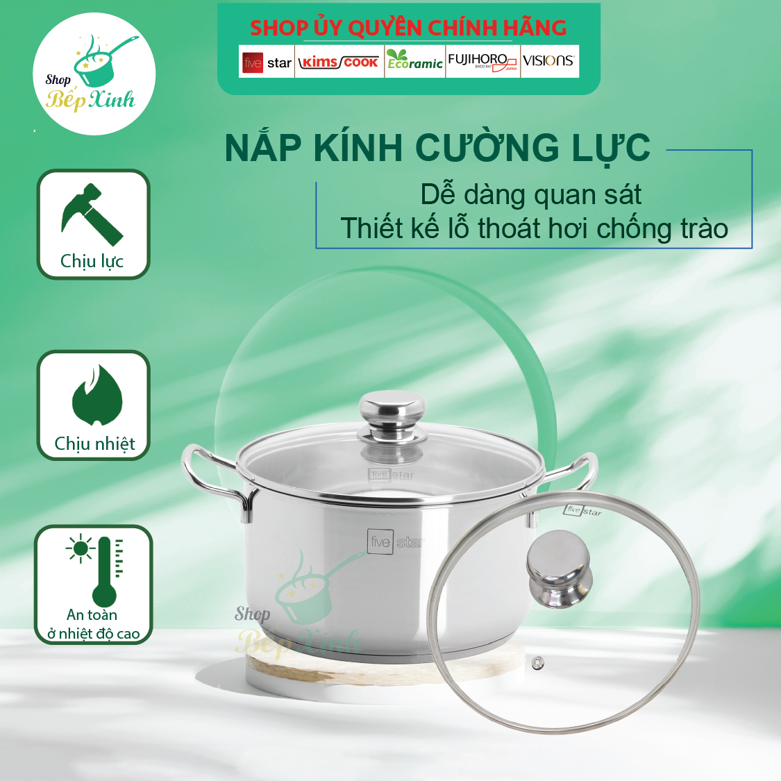 Bộ 4 nồi Inox 3 đáy Fivestar thân Cool FSB4007 nắp kính, bảo hành 5 năm #sanhangre zalo 0986588655