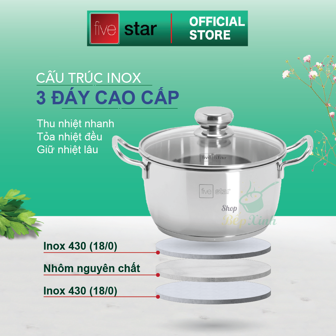 bộnồiinox #chảochốngdính #fivestar #chảoinox #nồiinox