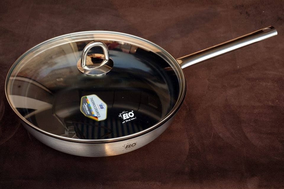 Bộ nồi từ Elo Smaragd Plus Chất liệu inox cao cấp cùng vung kính cường lực kháng sốc nhiệt của bộ nồi từ Elo Smaragd Plus   4. Chống dính Thermoceramica   Chảo chống dính sử dụng chất chống dính độc quyền thương hiệu Elo – chống dính sứ Thermoceramica. Có khả năng chịu nhiệt lên tới 400°C, kháng xước cực tốt, hoàn toàn không chứa PTFE và PFOA nên tuyệt đối an toàn cho sức khỏe. Chống dính Thermoceramica là ưu điểm lớn nhất của dòng chảo chống dính bếp từ thương hiệu Elo.   Ngoài chống dính hiệu quả và an toàn, chảo từ thuộc bộ nồi Elo Smaragd Plus còn có lòng sâu, cán dài, cân đối, cách nhiệt, cố định bằng đinh tán chắc chắn, cho người dùng chiên xào thoải mái, hiệu quả.