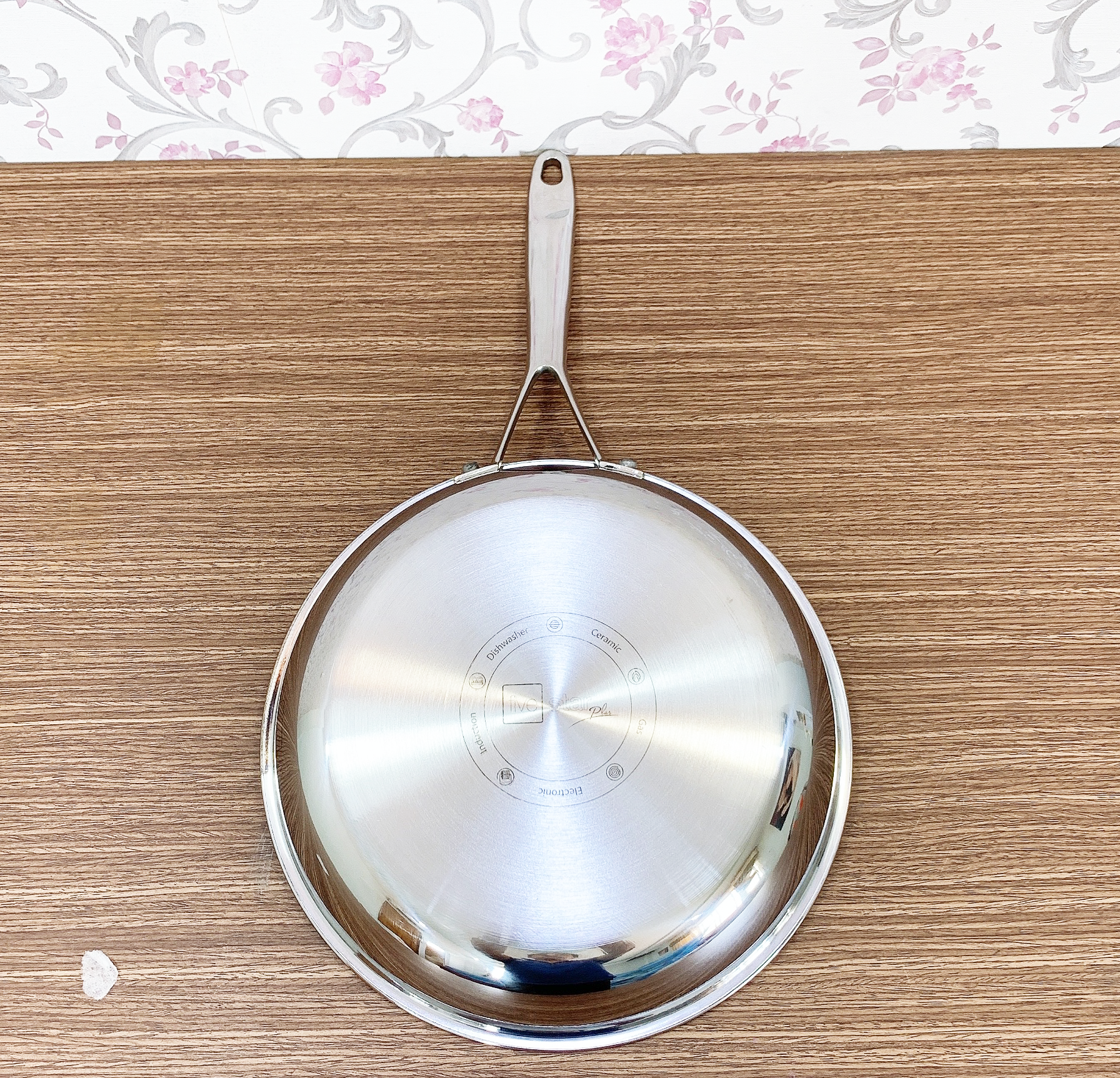 Cấu tạo 3 lớp đúc liền từ thân xuống đáy độ dầy 2,3 ly cho khả năng tỏa nhiệt nhanh và đều, tiết kiệm thời gian nấu nướng. Nắp nồi inox độ bóng BA sáng như gương.