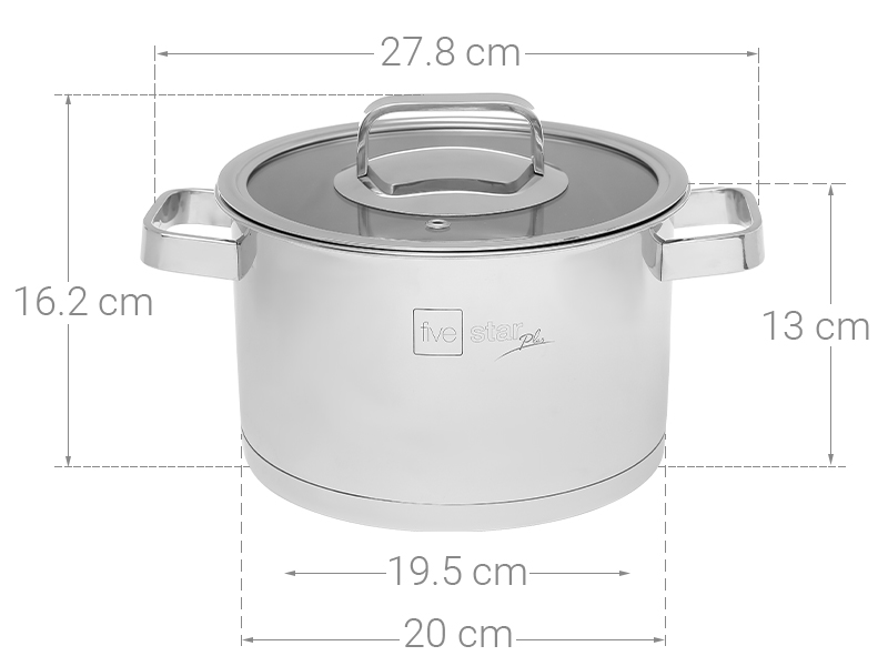 Bộ nồi gồm 4 nồi: Nồi nhỏ 16 cm để kho, hai nồi 18 cm và 20 cm trung để nấu canh. Nồi lớn 24 cm luộc gà nguyên con khoảng 1.5 – 1.8 kg.