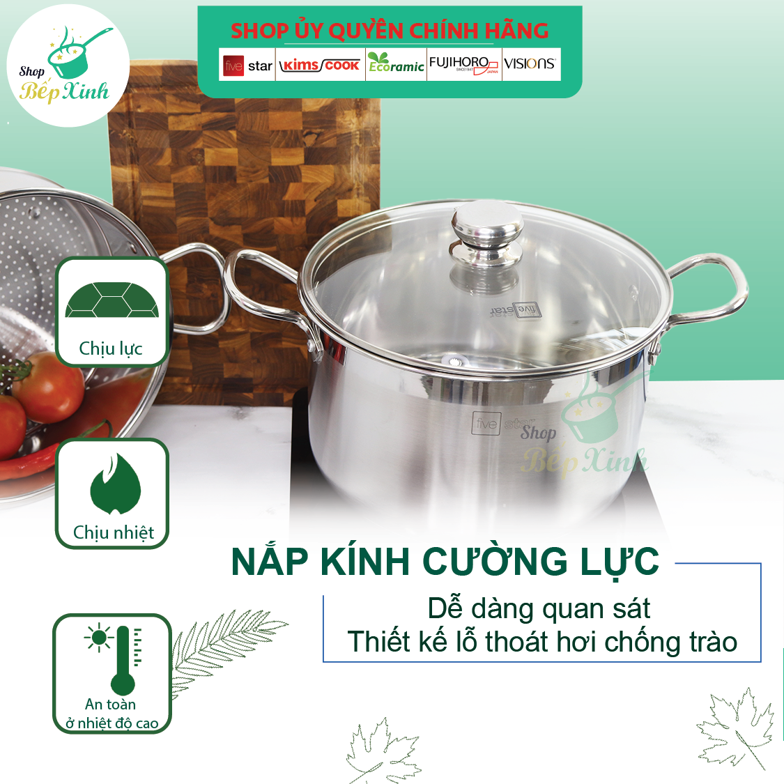 ✨Bộ nồi xửng hấp inox 3 đáy bếp từ Fivestar 28 cm nắp kính