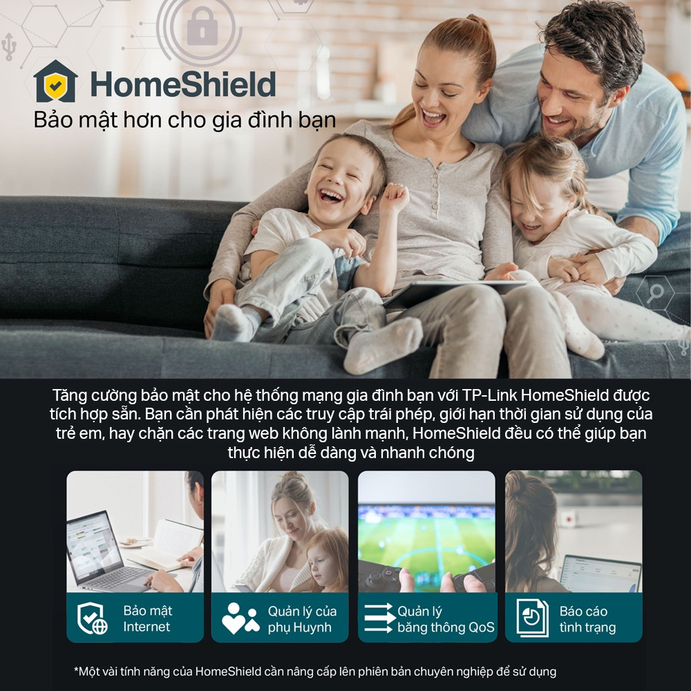 Router 3200Mbps Wi-Fi 6 Dual-band Gigabit Mesh: - Băng thông lớn; CPU lõi kép 4 luồng, hỗ trợ NAT - Truy cập đồng thời 48 người dùng (đề xuất) truy cập Wifi hai dải băng
