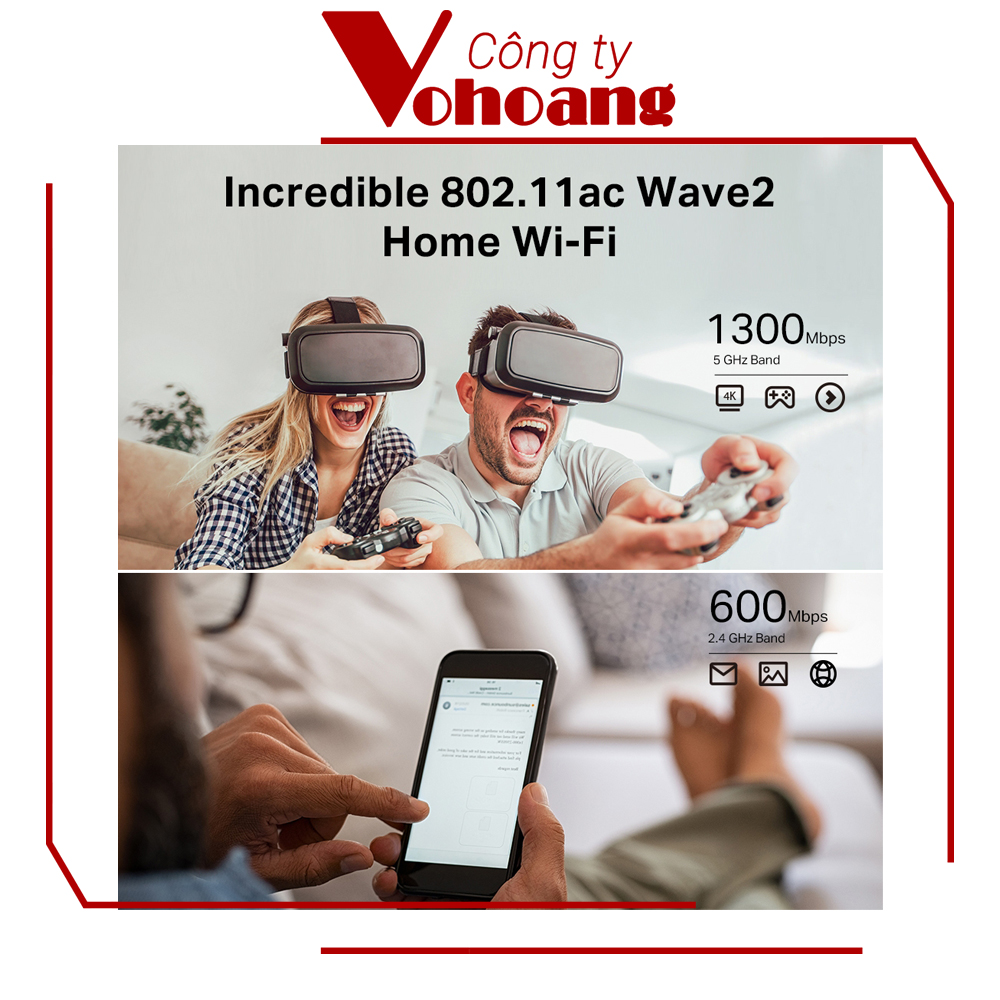 • Wi-Fi 802.11ac Wave2 – Tốc độ 1300 Mbps ở băng tần 5GHz và 600Mbps ở băng tần 2.4GHz.