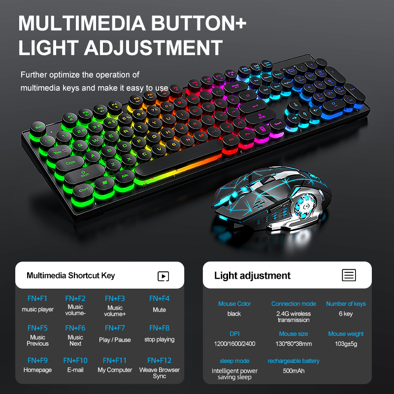 ✨Bộ Phím Chuột Không Dây T-Wolf TF380 Led 7 Màu – Hàng Chính Hãng