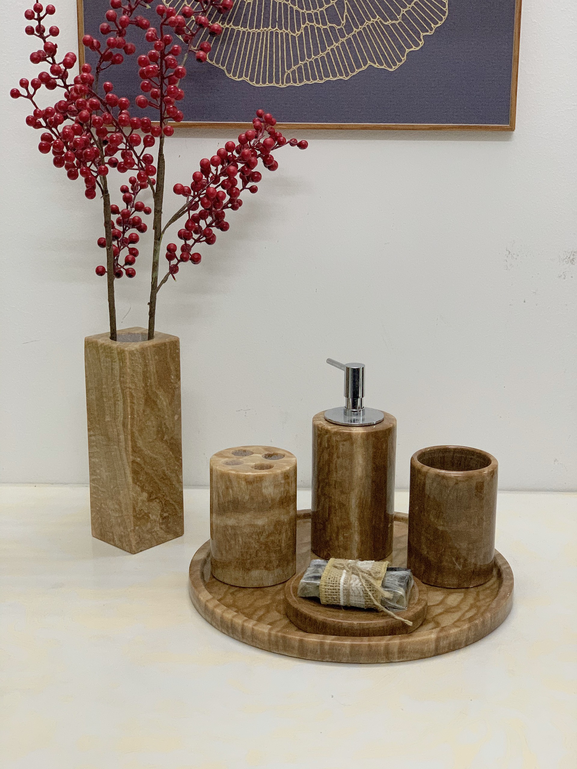 Bộ phụ kiện phòng tắm 4 sản phẩm bằng đá Marble màu Vàng vân gỗ: