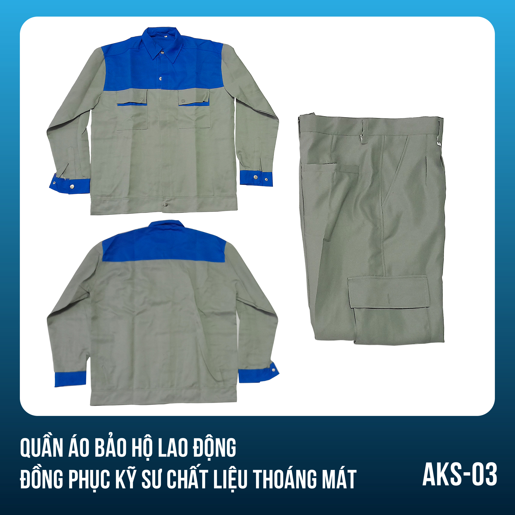 - Tên sản phẩm: Quần áo bảo hộ lao động, đồng phục kỹ sư chất liệu thoáng mát
