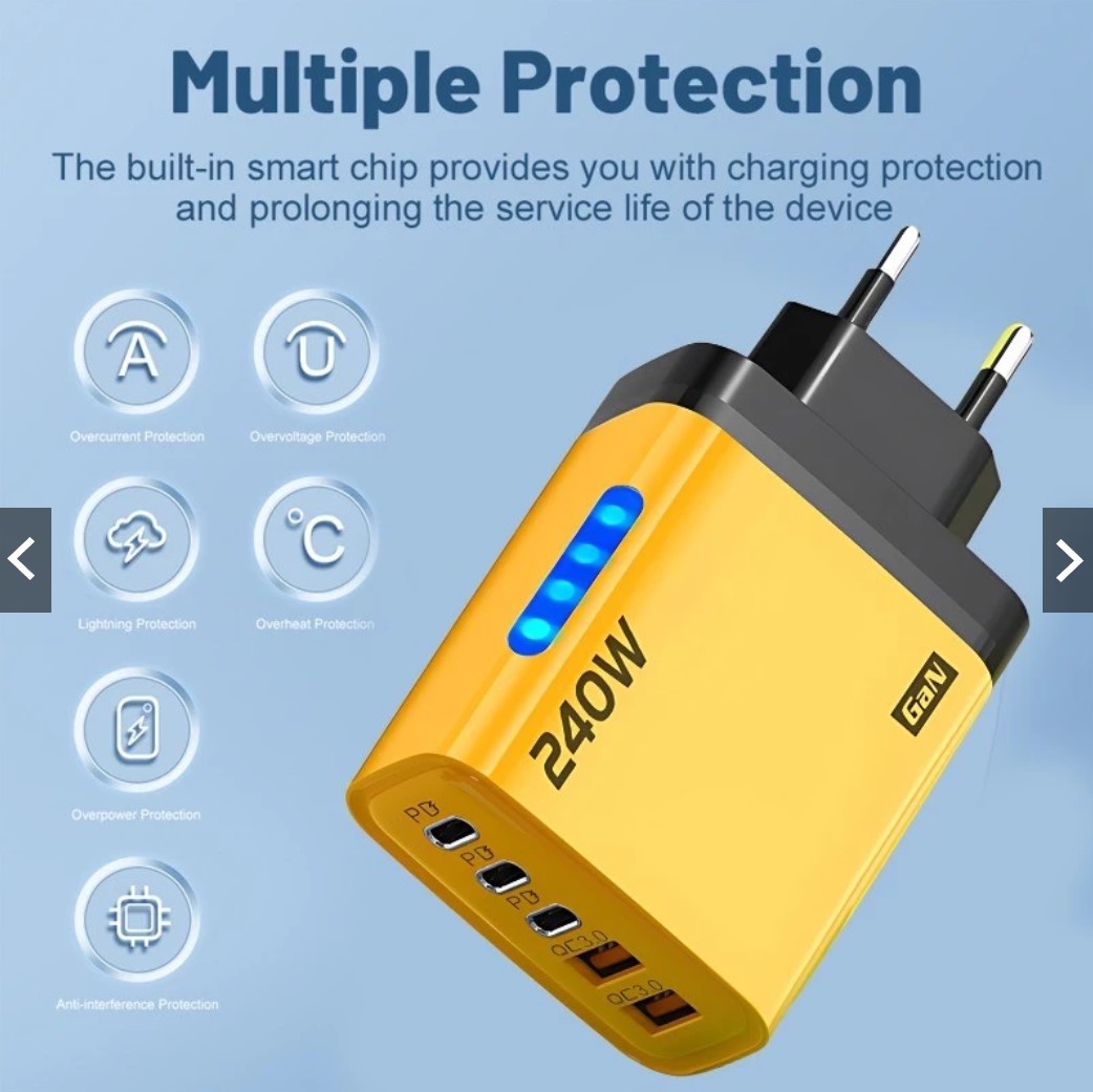 “Mạnh mẽ và nhỏ gọn ”: USB kép 240W + 3PD với bộ sạc LED của chúng tôi là nguồn điện mạnh mẽ trong một gói nhỏ được thiết kế để cung cấp khả năng