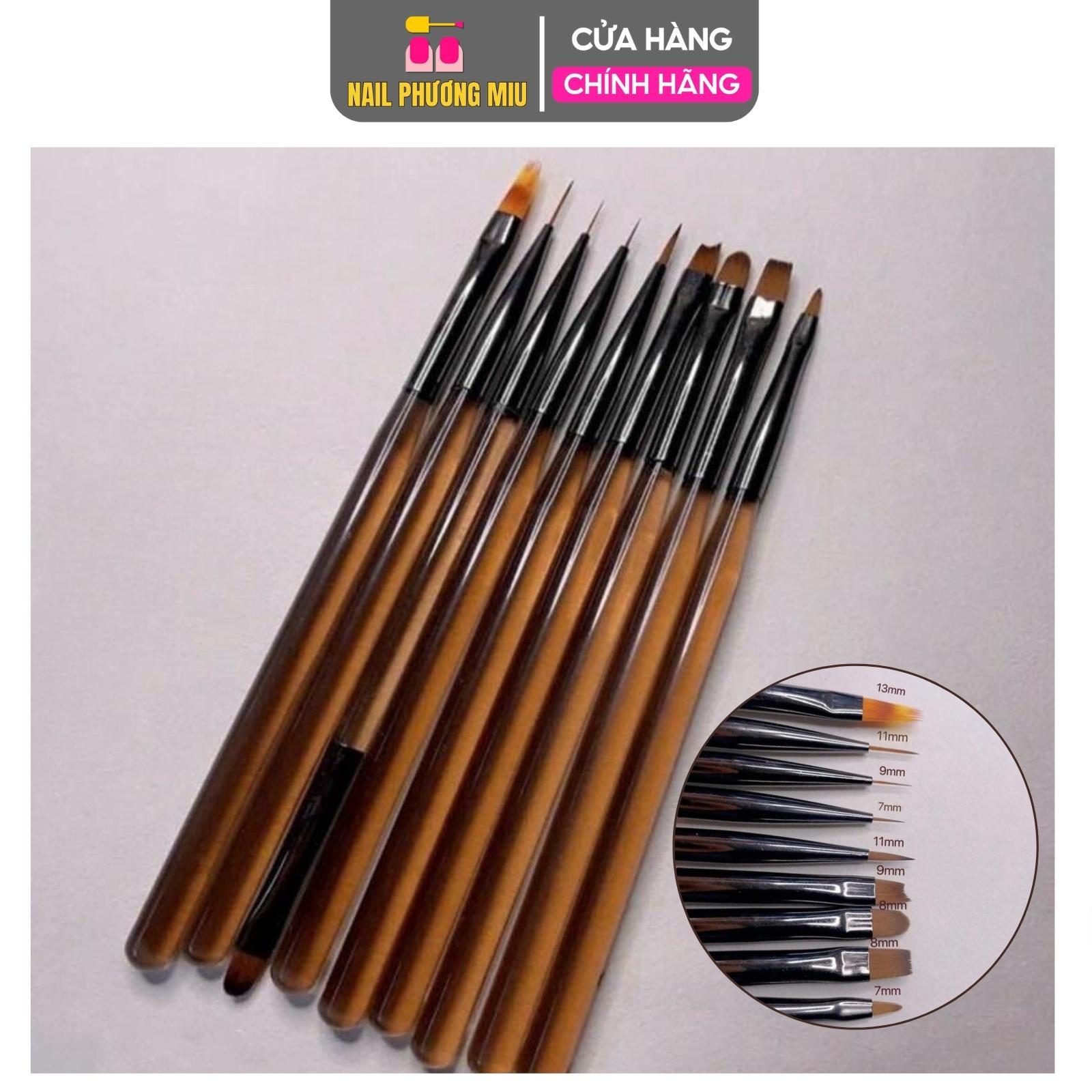 ✨Bộ Set Cọ 9 Cây Làm 10 Đầu Làm Nail, Màu Nâu, Cọ Bản, Cọ Fen, Cọ vẽ Omber, Cọ Nét, Cọ Đắp Gel Cho Thợ Làm Nail Tiện Lợi
