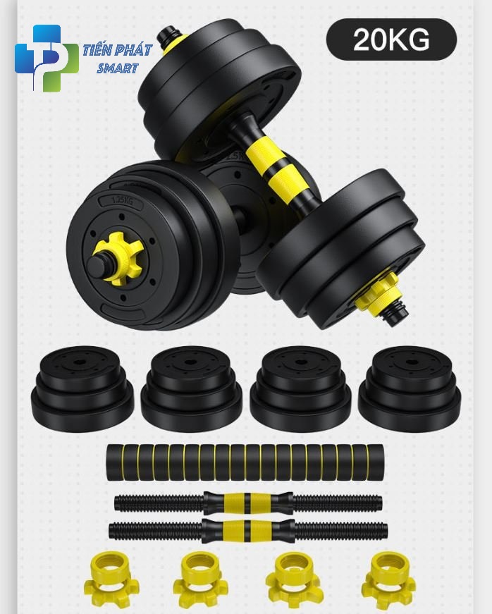 Tạ tay nam nữ PVC 4 in. Kết hợp tạ đòn đẩy 20kg tập tại nhà có thể điều chỉnh trọng lượng bộ tạ miến