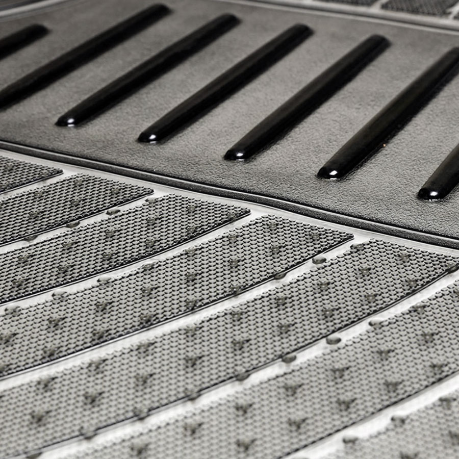 Thảm lót sàn ô tô PACKY PODA 5455 màu xám 4 chỗ với cấu tạo từ 100% nhựa PVC cùng thiết kế đường vân trên bề mặt giúp chống trượt hiệu quả trên xe, dễ dàng