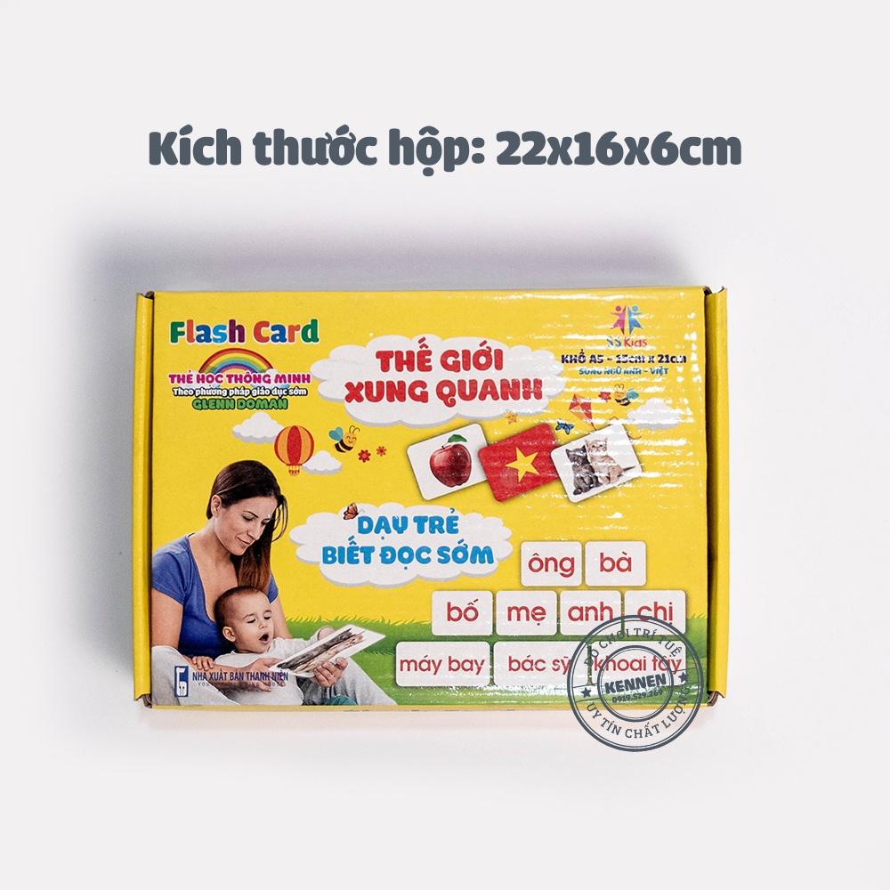 Bộ thẻ học thông minh cho bé loại to cứng khổ A5 Glenn Doman 16 chủ đề giúp trẻ nhận biết thế giới