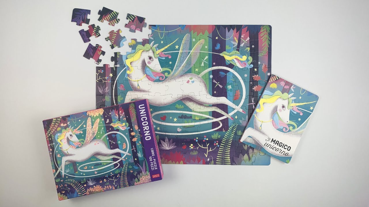 ✨Bộ tranh ghép xếp hình 100 mảnh dành cho bé kèm truyện chủ đề kỳ lân - Book & Giant Puzzle - Unicorn - 100 Pieces