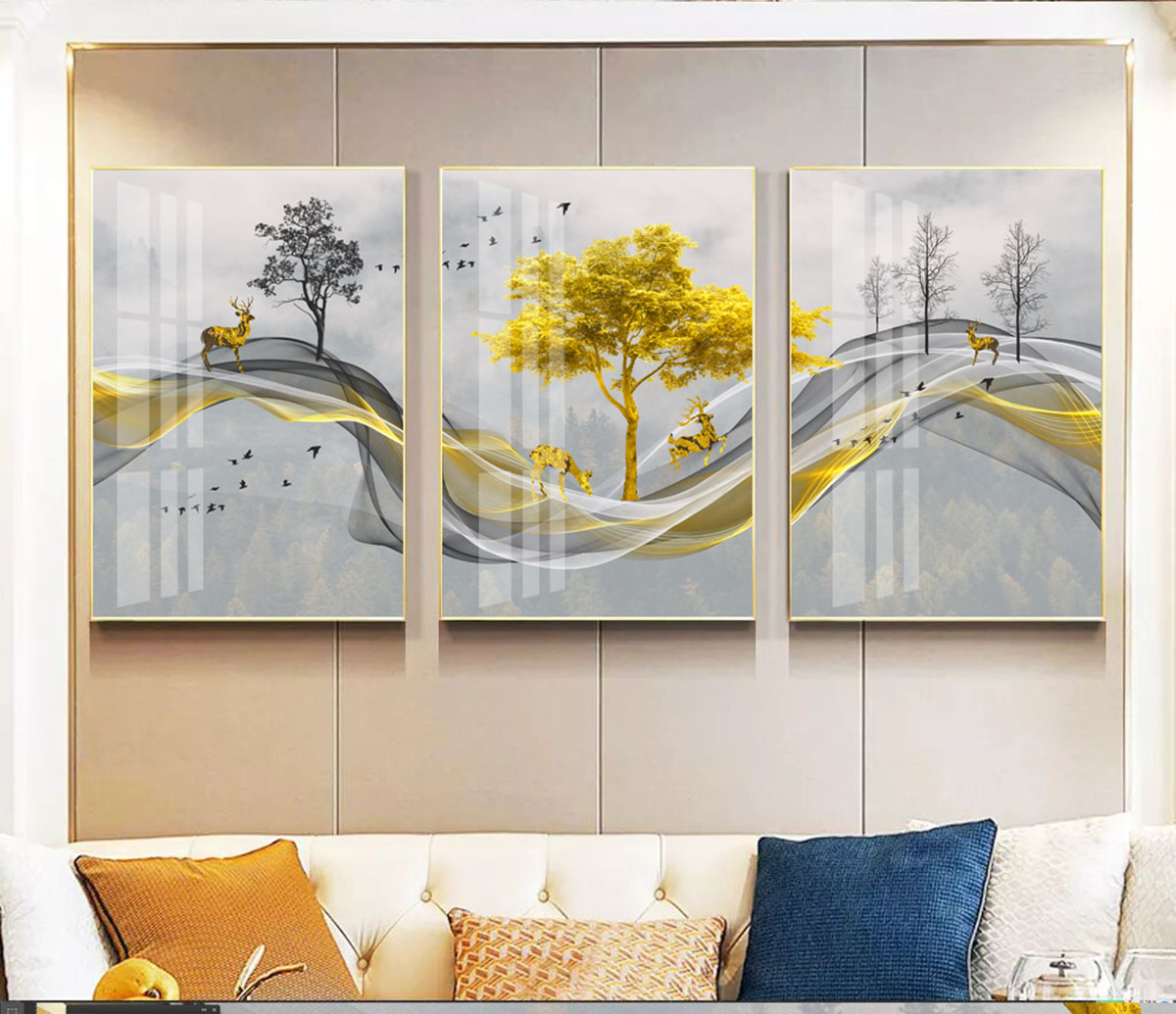 - Nội dung, chủ đề, không gian ứng dụng: Tranh treo phù hợp cho các không gian như phòng khách, phòng ngủ, phòng ăn hoặc các phòng chức năng khác trong không gian nhà ở gia đình. Xu hướng sử dụng tranh bộ, tranh ghép trong trang trí nội thất đang lên ngôi trong những năm gần đây. Dòng tranh hiện đại này không những đẹp, bền, nhẹ, dễ dàng lắp đặt mà còn có giá thành phù hợp với nhiều nhóm đối tượng khác nhau. Dòng tranh bộ với nhiều chủ đề khác nhau rất dễ phối hợp trong các không gian nội thất, bạn có thể treo tranh với bất kỳ các mảng tường trống trải nào trong phòng ngủ, phòng khách, hay phòng ăn, bạn cũng có thể treo tại các không gian công cộng khác như văn phòng làm việc, quán coffe, spa hay bất cứ nơi nào bạn thấy thích. là một trong những điểm nhấn trong căn nhà của bạn, giúp không gian nhà ở thêm ấn tượng, đẹp mắt. Đối với những sành nghệ thuật thì đây chính là thú vui tao nhã, tăng thêm niềm hứng khởi, động lực cho ngày làm việc mới hay có những phút giây thư giãn thoải mái khi quay trở về mái ấm của mình.