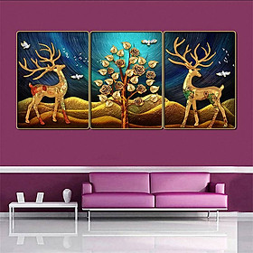 Bộ 3 tranh treo tường phòng khách, phong cách hiện đại tráng gương 5D may mắn đến nhà cho gia chủ ☘️