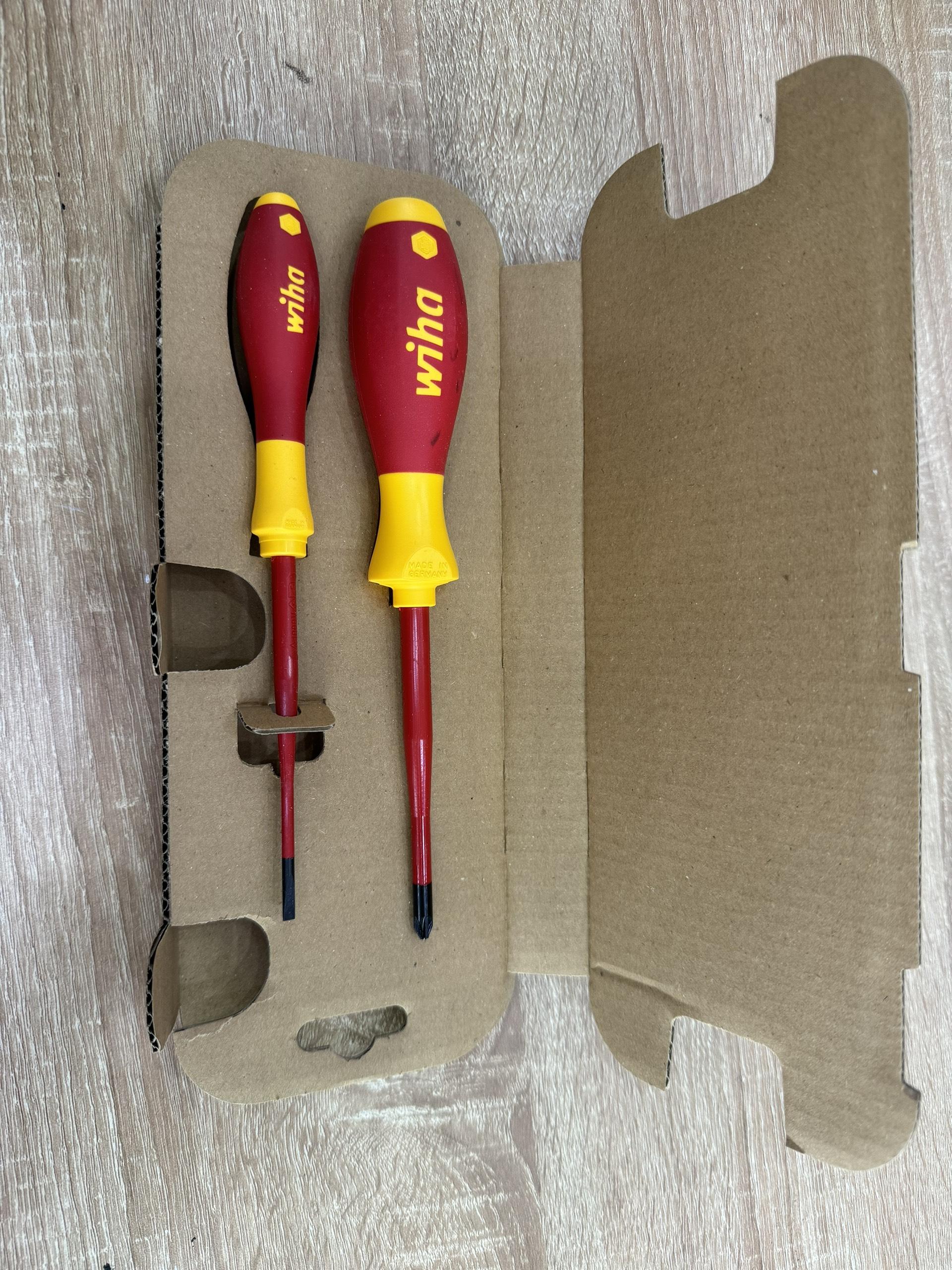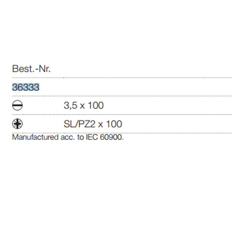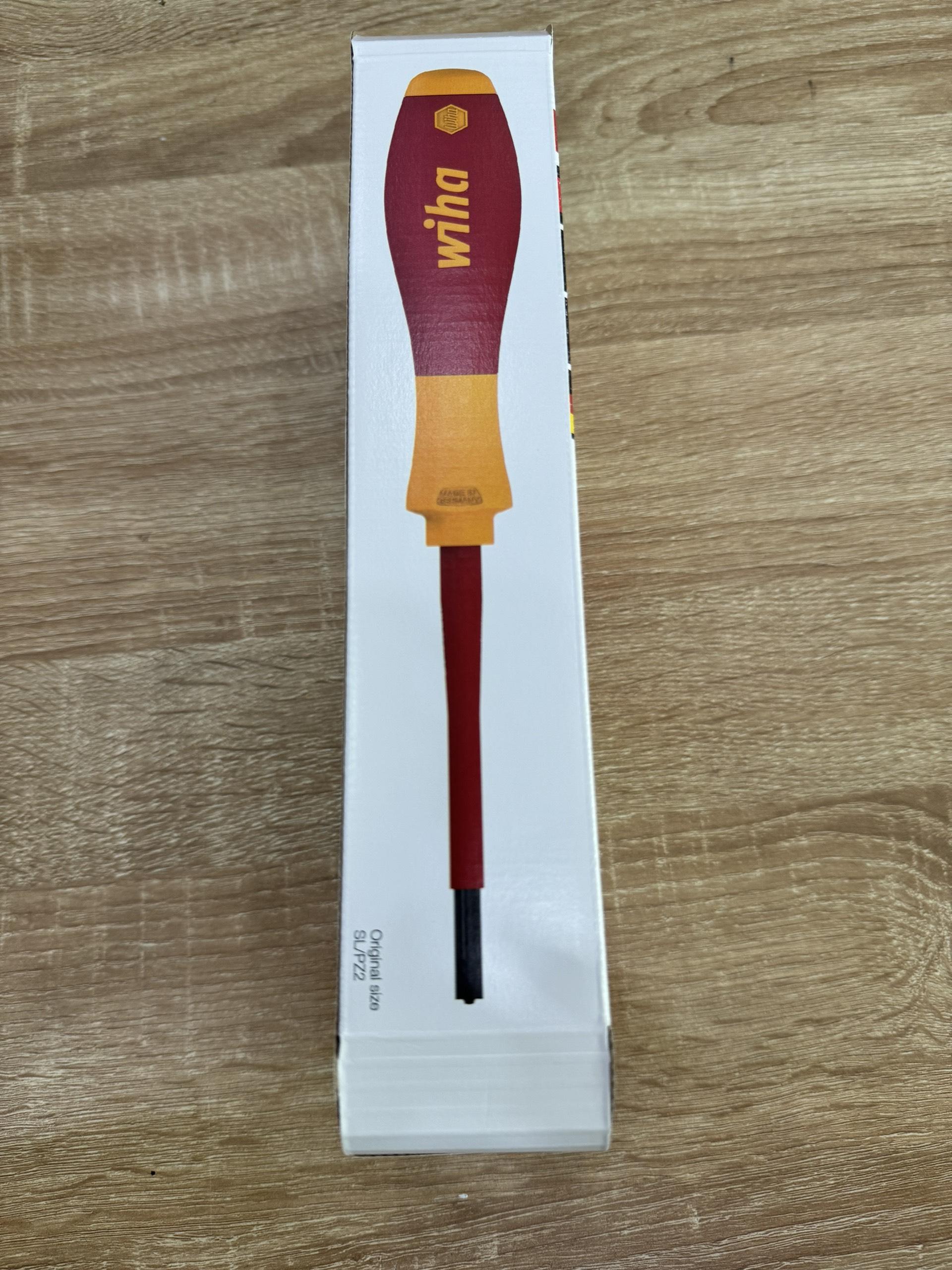 English name:Screwdriver SoftFinish electric Tiêu chuẩnĐược thử nghiệm theo IEC 60900.Ứng dụng Đối với công việc trong khu vực của các bộ phận sống lên đến 1.000 V AC. Size: 2,5 mm Chiều dài: 179