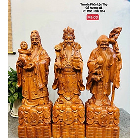 ✨Bộ tượng phật tam đa phúc lộc thọ bằng gỗ hương đá liền khối kt cao 60cm