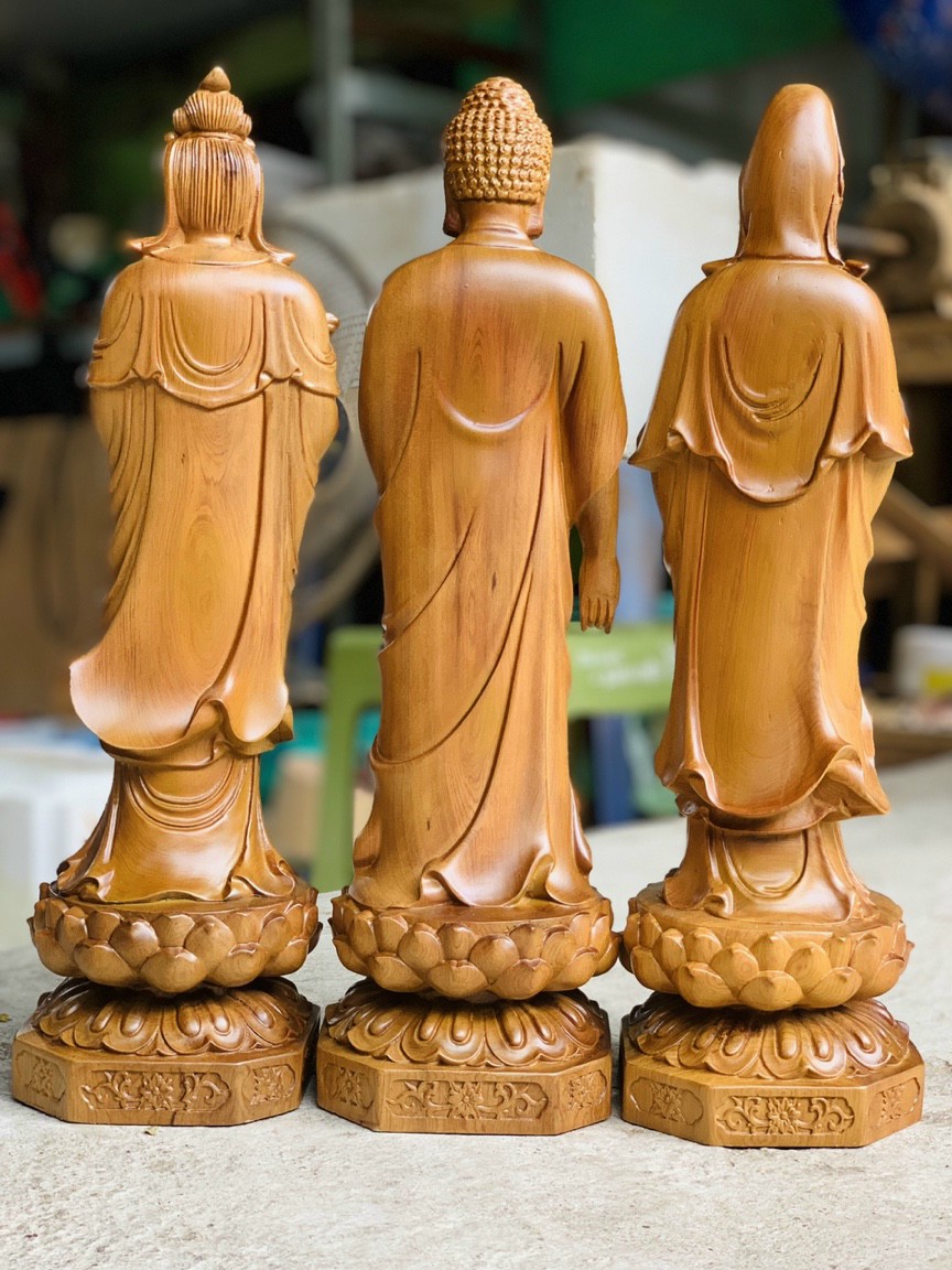 ✨Bộ tượng phật tam thánh bằng gỗ bách xanh thơm nức kt cao 40×12cm
