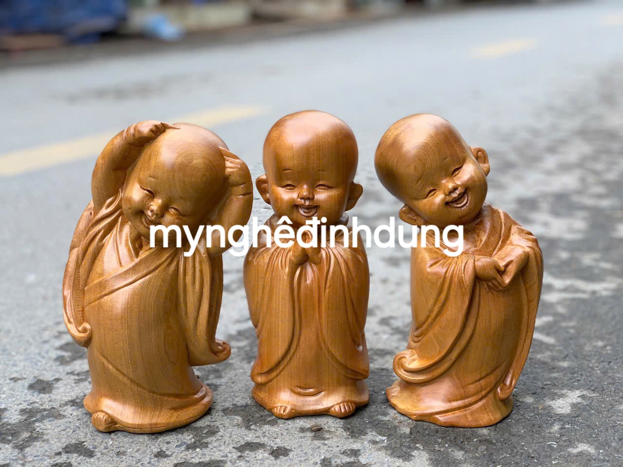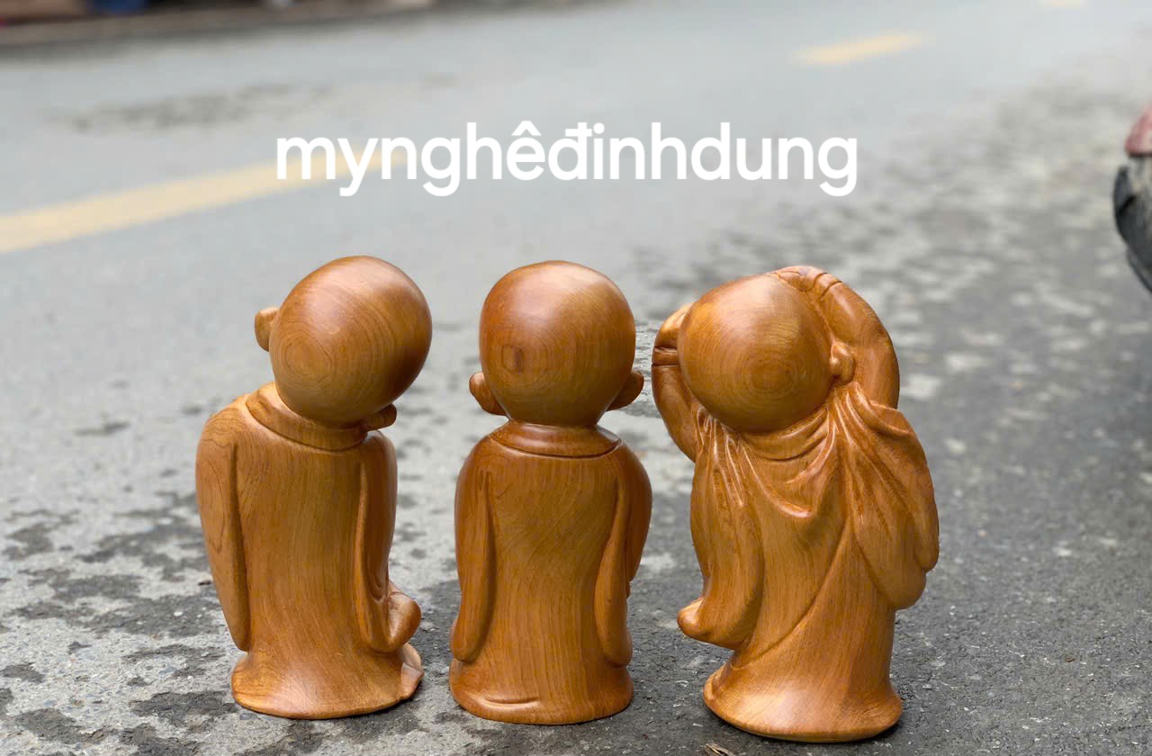 ✨Bộ tượng tam tâm bằng gỗ bách xanh thơm nức cao 25x14x11cm