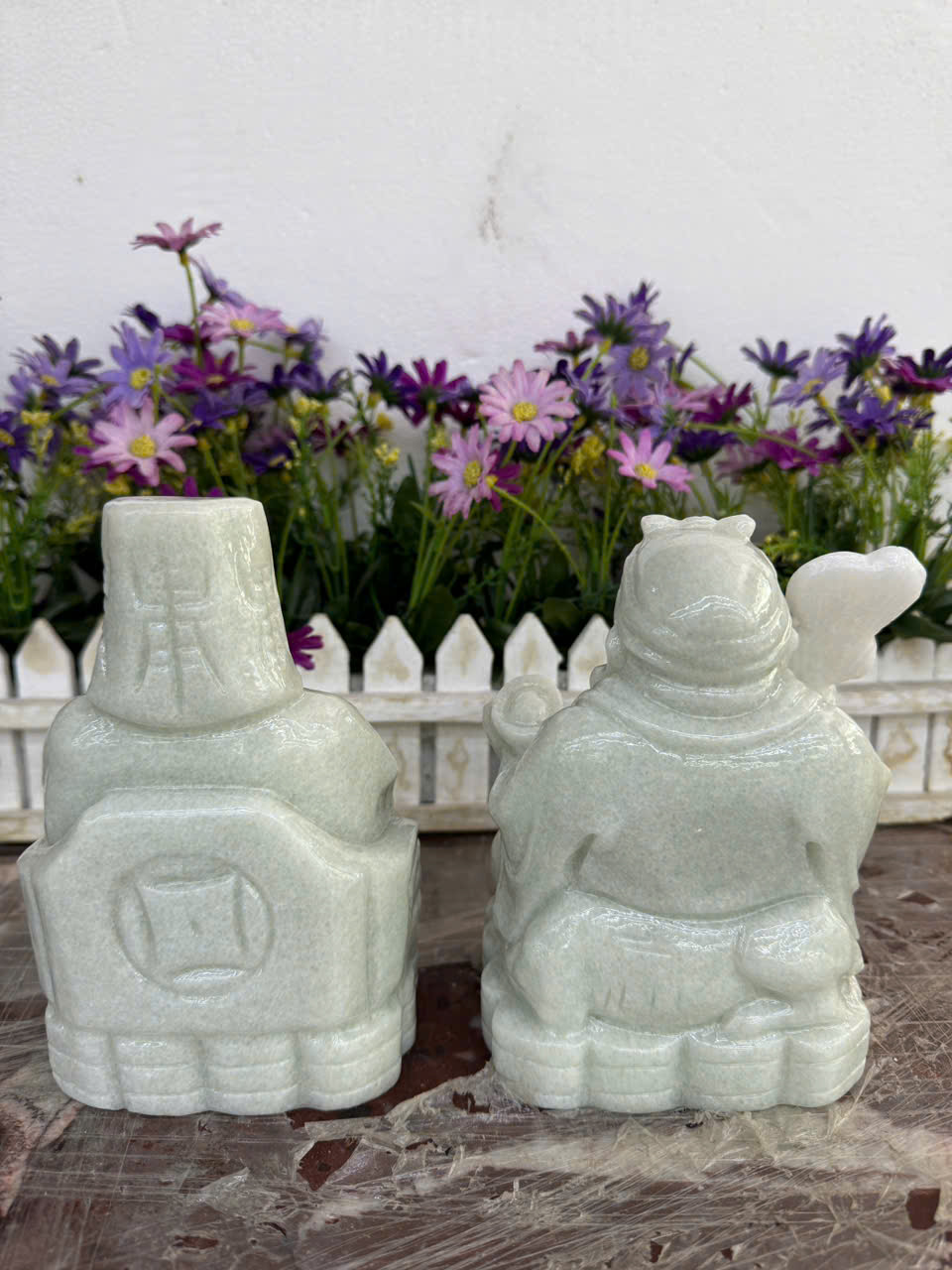 Tượng thần tài, thổ địa bằng đá cẩm thạch xanh tự nhiên