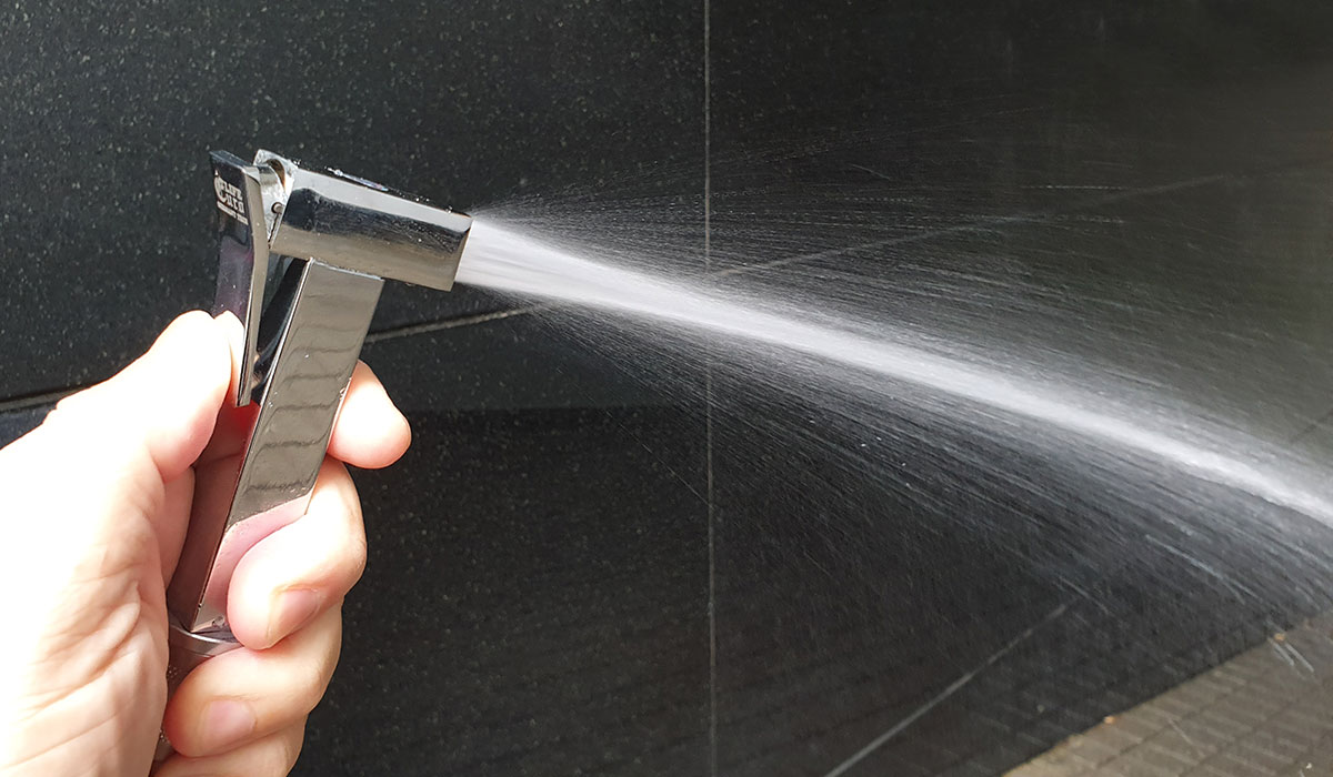 Tay xịt được sản xuất với chất liệu Đồng H61, mạ Crome 3 lớp sáng bóng. Vật liệu đạt tiêu chuẩn chất lượng Châu Âu, không bong tróc lớp xi mạ theo thời gian.